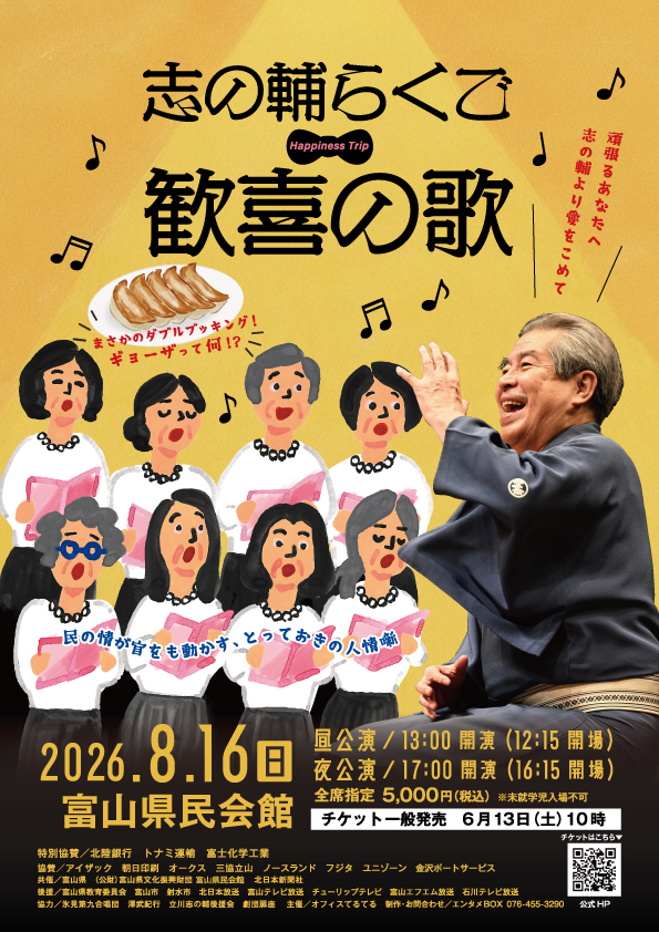 「志の輔らくご~歓喜の歌~」が 8月16日(日)富山県民会館でリバイバルされます!